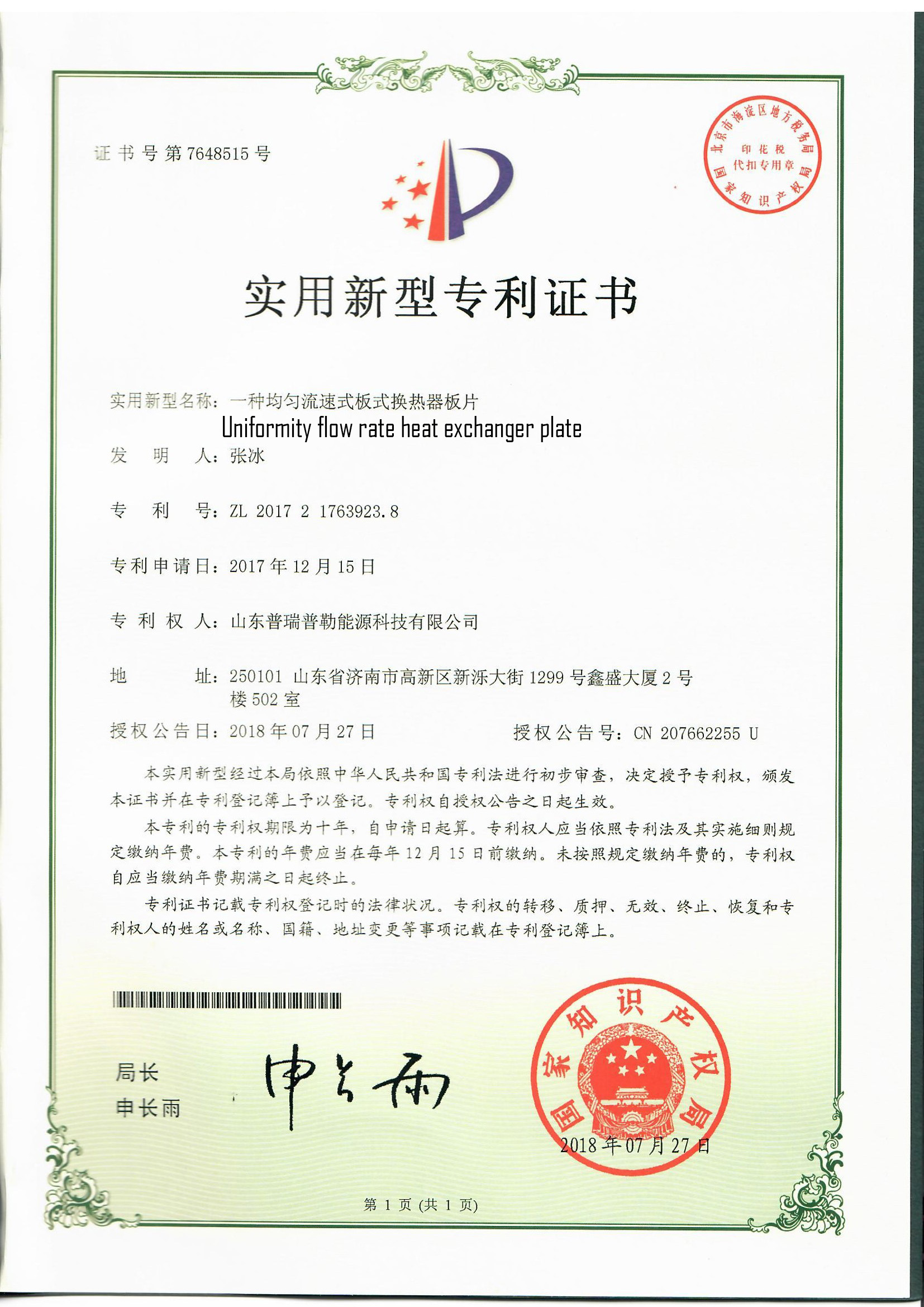 Propellent patent-Uniformity flow rate heat exchanger plate