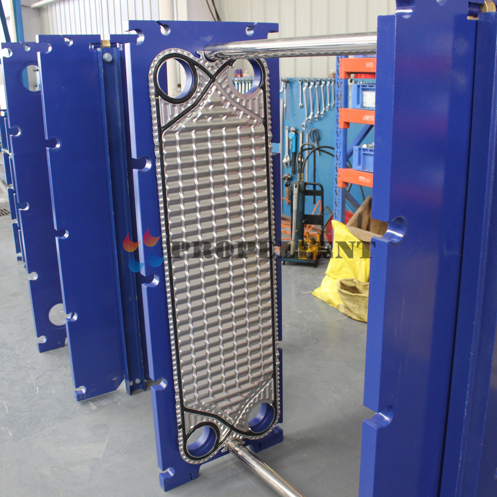 (1)Easy to remove and clean up: a simple unloading pressure bolt and slide the end of the movable frame, visual free flow plate heat exchanger can every inch of the wall. It is so easy to on-site clean up because of less residual liquid inside the plate heat exchanger