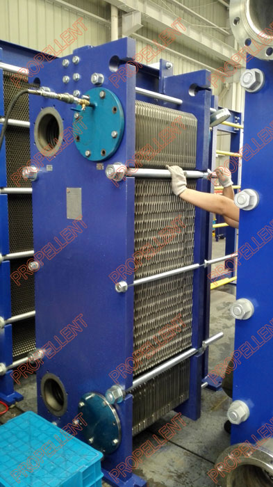 2 units of wide gap gasketed plate heat exchanger for fermentation liquor is tested and ready to be delivered. Pressure test of the multi-stage heat exchanger is totally different from traditional.