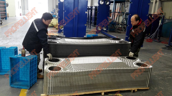 A new type of wide gap plate heat exchanger is being assembled. The connection of this new type is DN250 while the gap is 8mm. The exchanger is tested by many of our customers and proved to be very suitable for viscous or dirty liquids. Typical applications include waste water heat recovery, fermentation liquor cooler, starch milk heat recovery, etc.